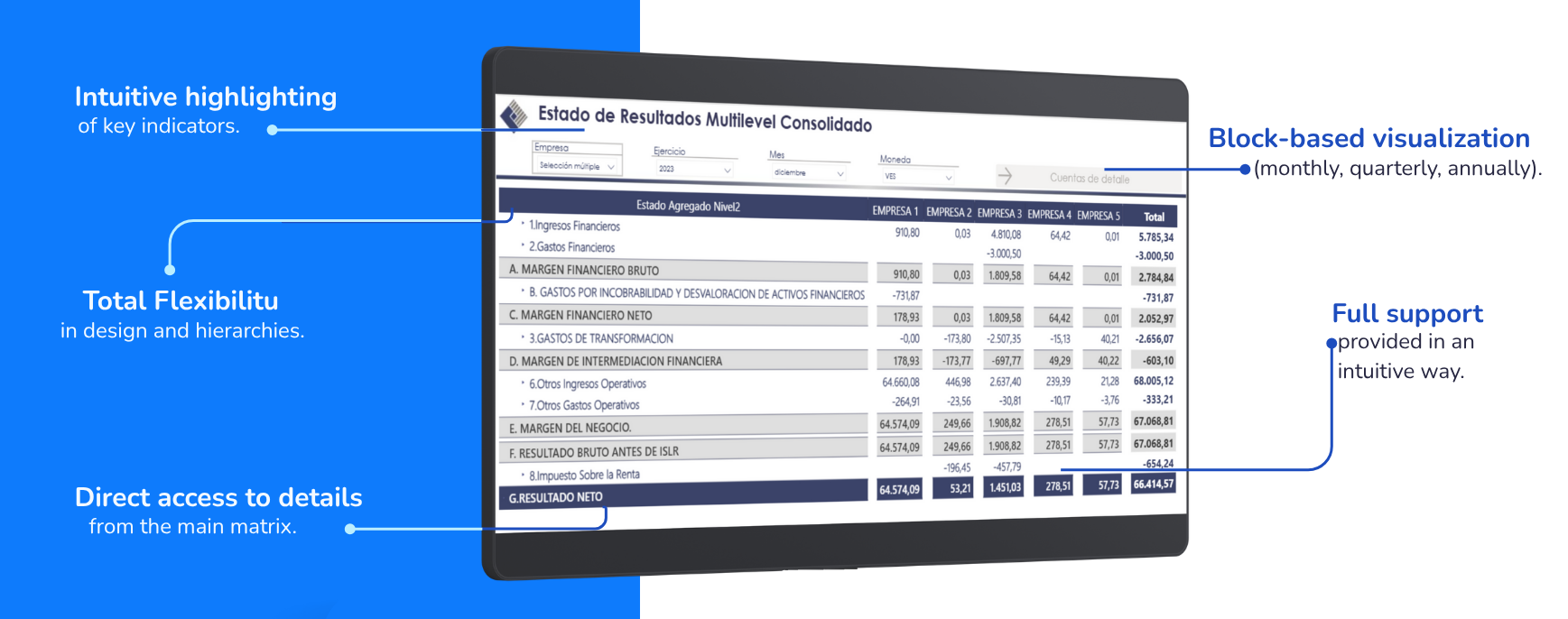 "Accessing financial data efficiently is a constant challenge. With Xerppa Multilevel Matrix, we can display financial statements by month, quarter, or semester — without building multiple pages. A smart visual solution for financial control"